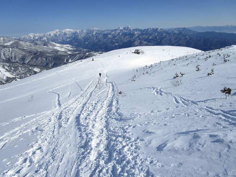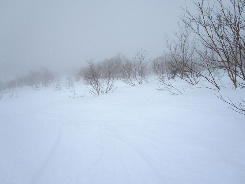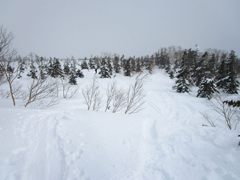 登りのトレースを忠実に追いかけて下るのがよさそうだ。