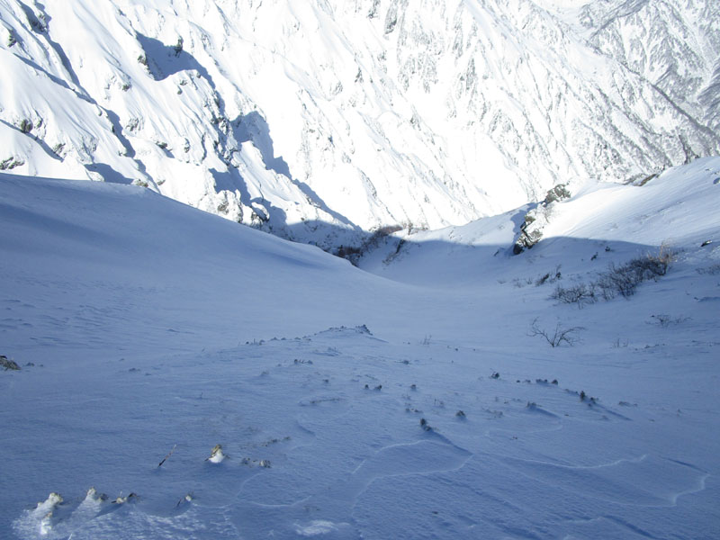 天狗原に出るあたりの斜面は斜度がきつく、ここも雪崩がやや不安。