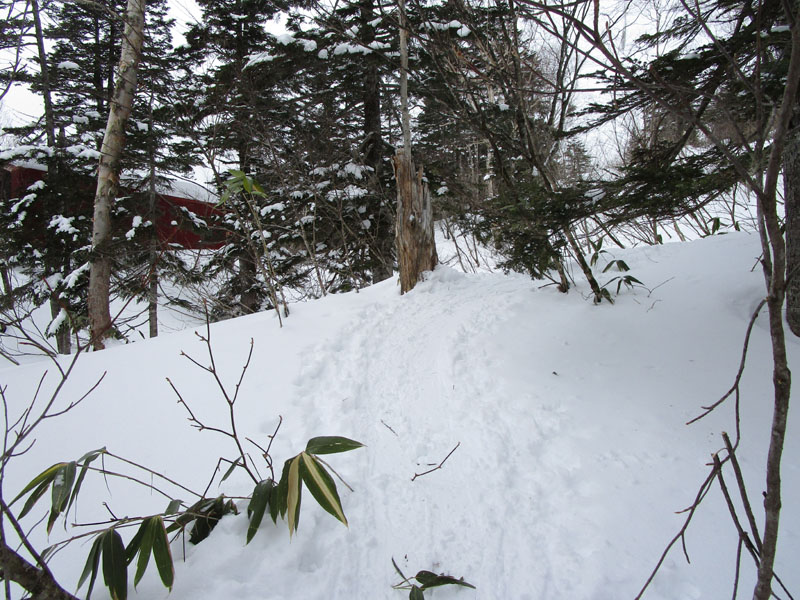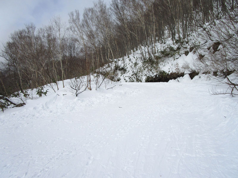 標高1650m地点でゲレンデから林道にとりつく。