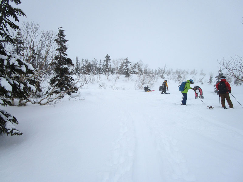 微妙に斜面をトラバース気味に通るところもあり、雪崩に注意。