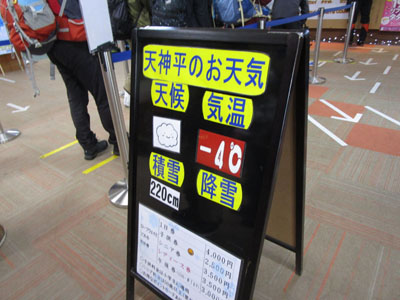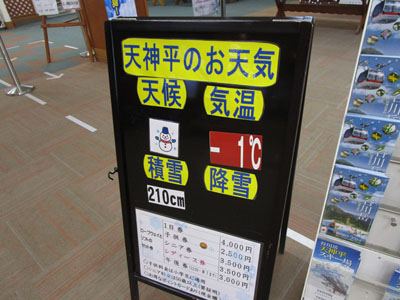 気温はマイナス1℃、積雪210cm、この時期としては異常に積雪が少ない。