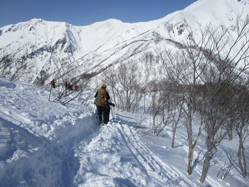 夏道はトラバースで雪質によっては危ないことから、このような冬道が正解だ。