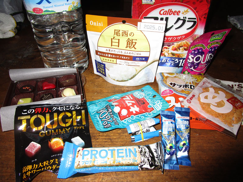 今回搬入食糧。(夕飯を食べた後なので残りが少ない)