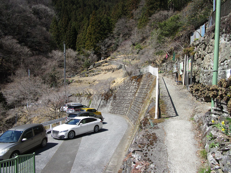 登山口の駐車場は4つあるが、上から2つ目は2019年台風19号の豪雨で大崩落。