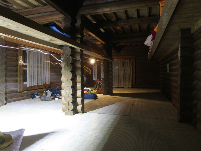 今日は僕のほかにテントはないので、小屋裏のべスポジに移動する。