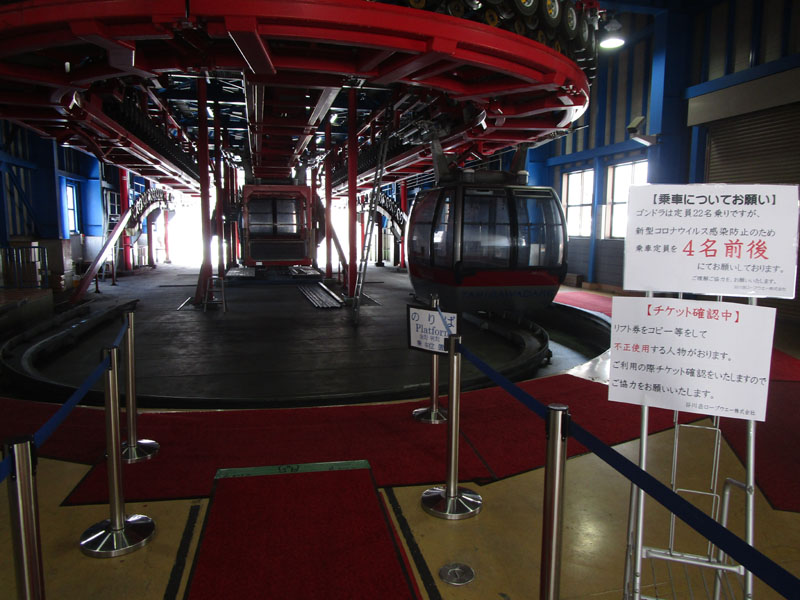 通常定員22名のゴンドラが、4名で運用されている。
