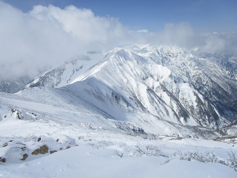 主脈の山々。だいぶ笹が出てきた。