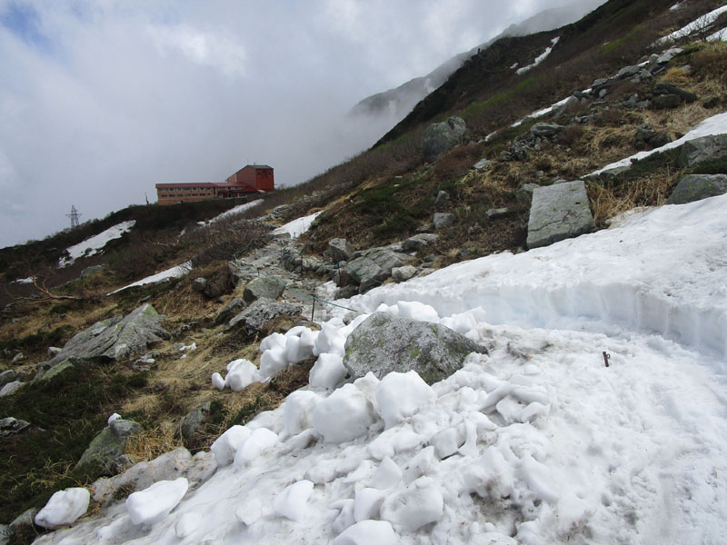 まだまだ雪が残っていて、軽アイゼン程度が必要。