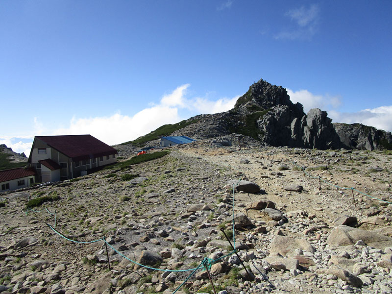 宝剣山荘でテント泊の受付をし、天狗荘の前にテントを張る。