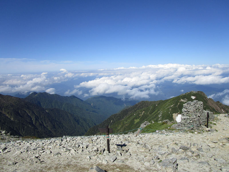 山頂では4枚着てちょうどいいくらい。10℃程度だろう。