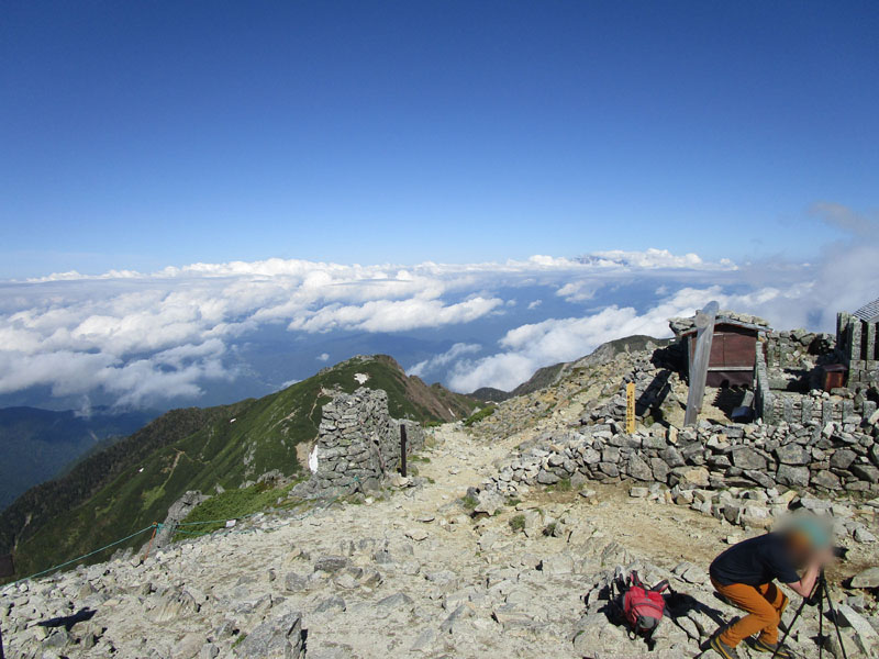 10Lの軽量サブザックにレインウェア等の荷物を入れて頂上に向かう。