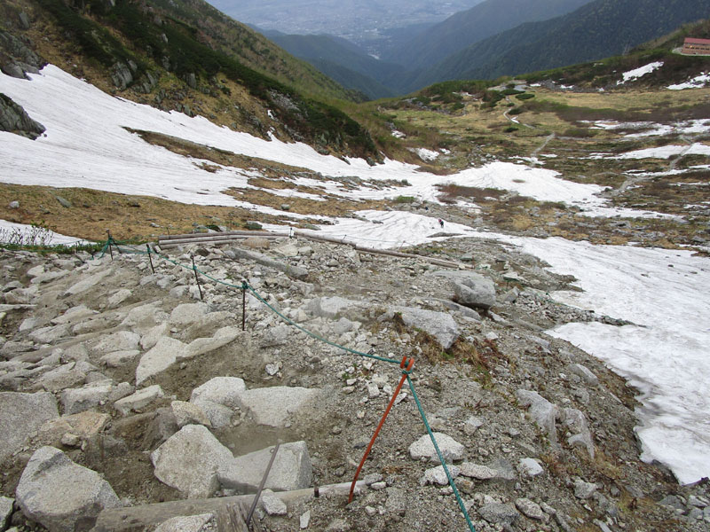 千畳敷カール内は晴れている。風も弱まり、普通に歩ける。