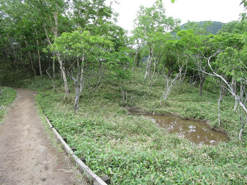 無雪期には稜線上に不思議な池が出現するポイントだ。