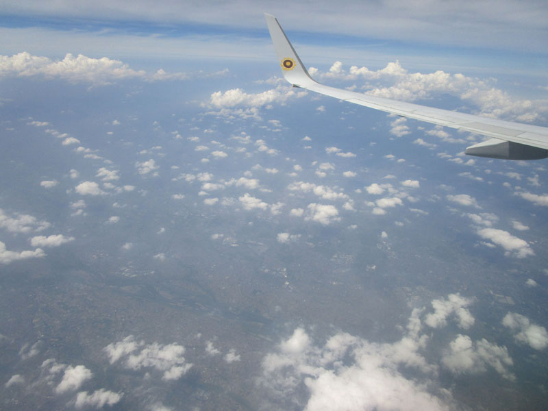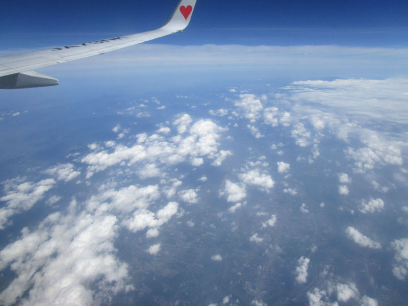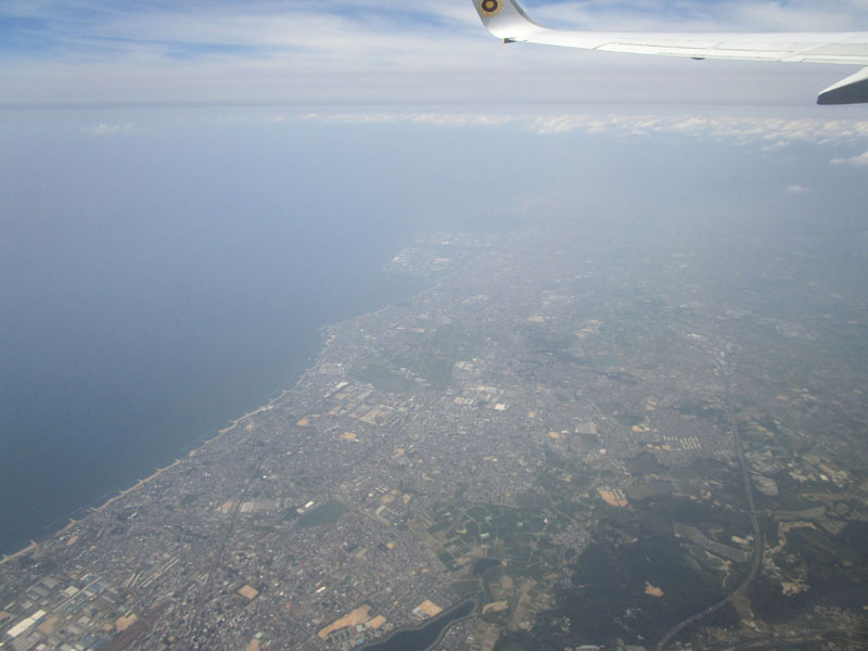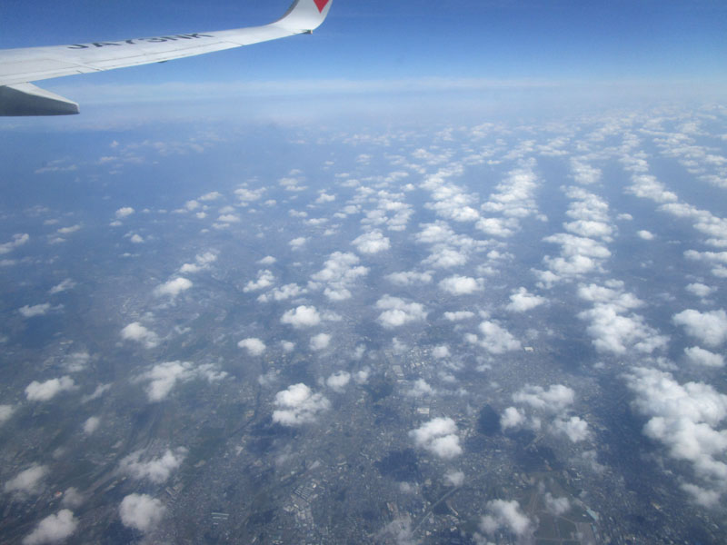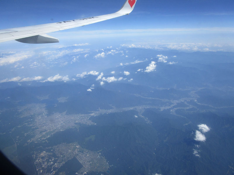 灼熱の関東平野だが、高度30,000ftなら、地上が40℃でも上空は-20℃と涼しい(?)。
