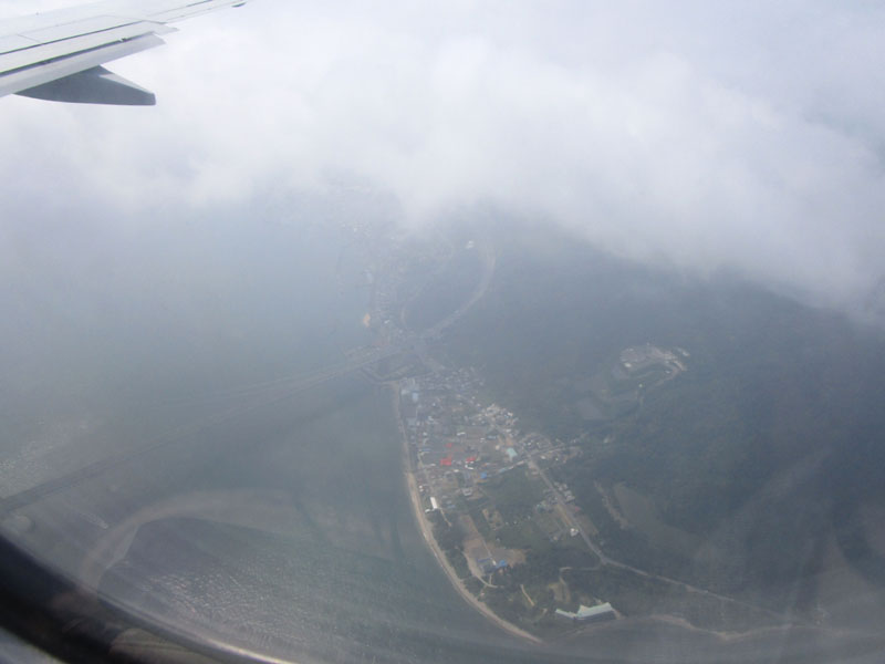 明石海峡大橋を高度900mで通過して神戸空港へ。