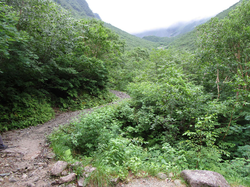 横尾まで降りてきた。ここまでくればほぼ下界。救急車も来れる(2時間以上かかるが)。