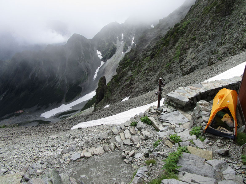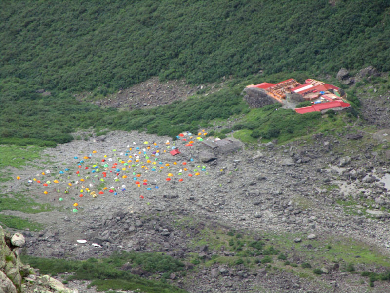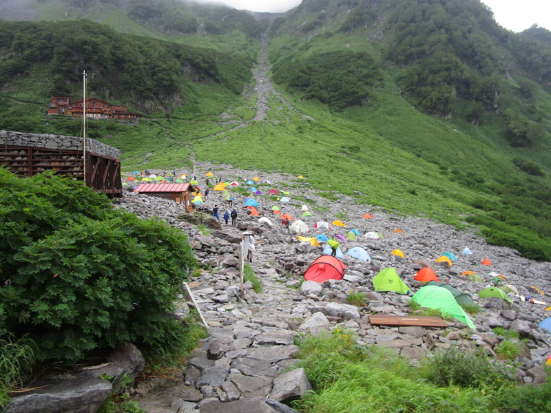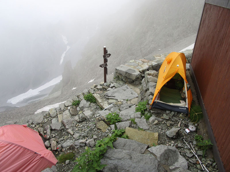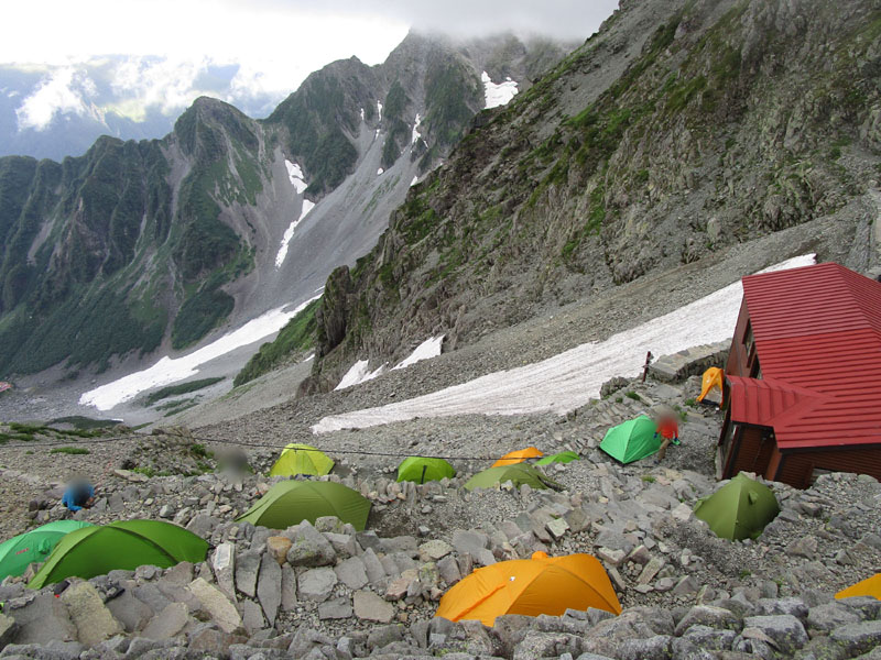 穂高岳山荘のテント場は予約制だが、満室でも入れ替わりが激しく、
