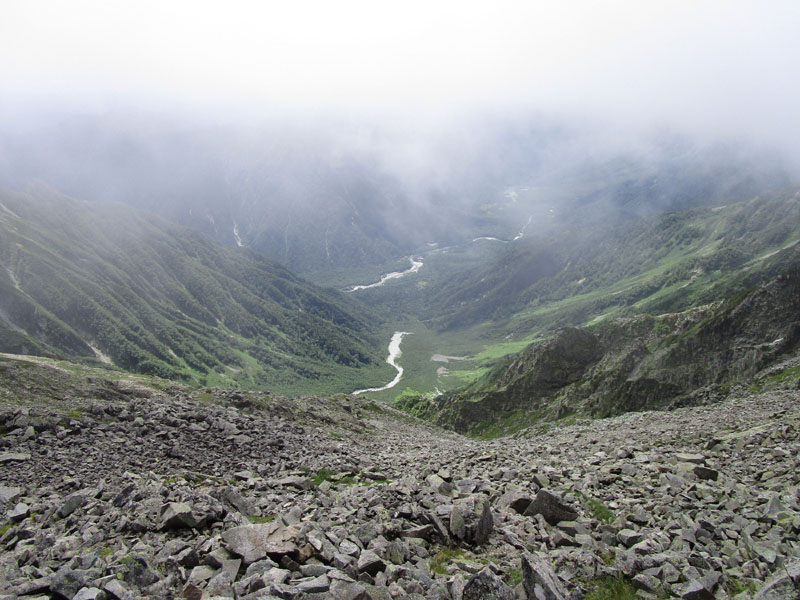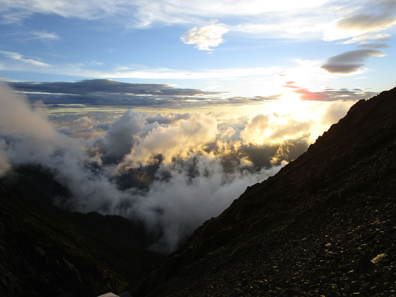 そこで3時半に起床し、ゆっくり撤収などして、5時に下り始める。