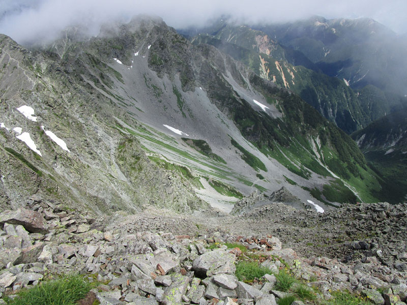 山肌には雪が残っていたが、登山道上にはなく、アイゼンは不要だ。