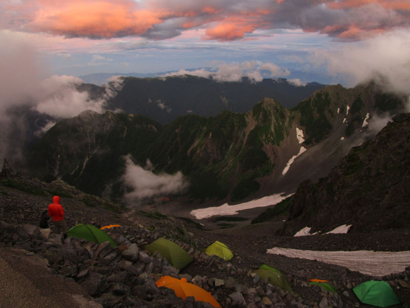 奥穂山頂等でビバークになってしまったという話も聞く(奥穂山頂は5張程度)。