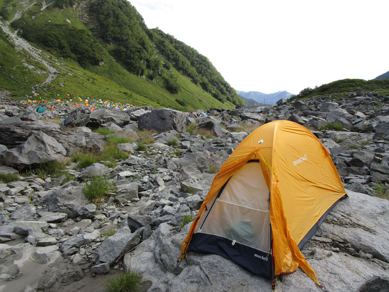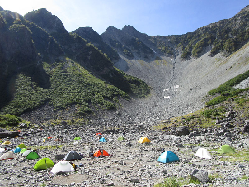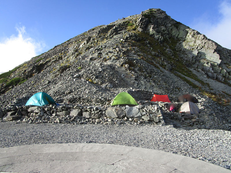 奥穂山頂等でビバークになってしまったという話も聞く(奥穂山頂は5張程度)。