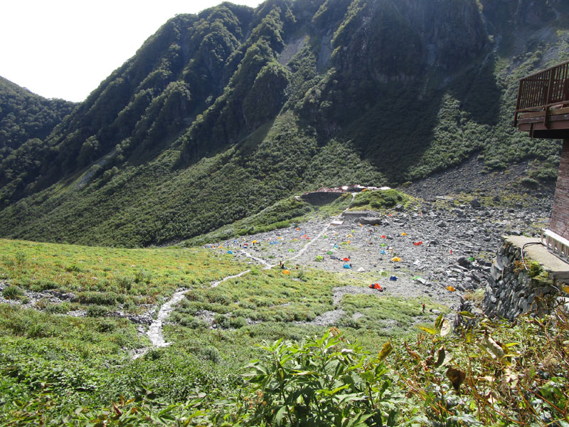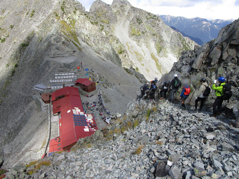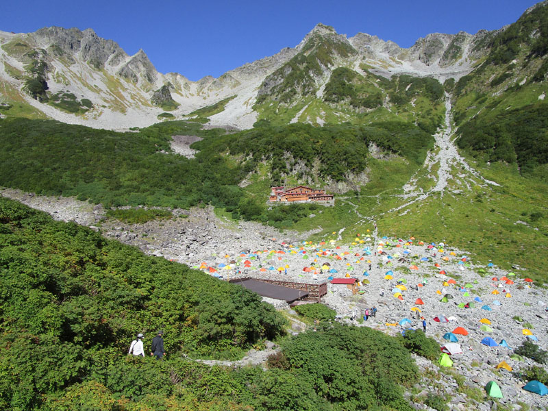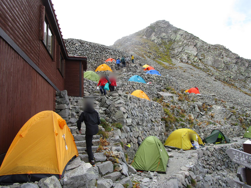 穂高岳山荘のテント場は予約制だが、満室でも入れ替わりが激しく、