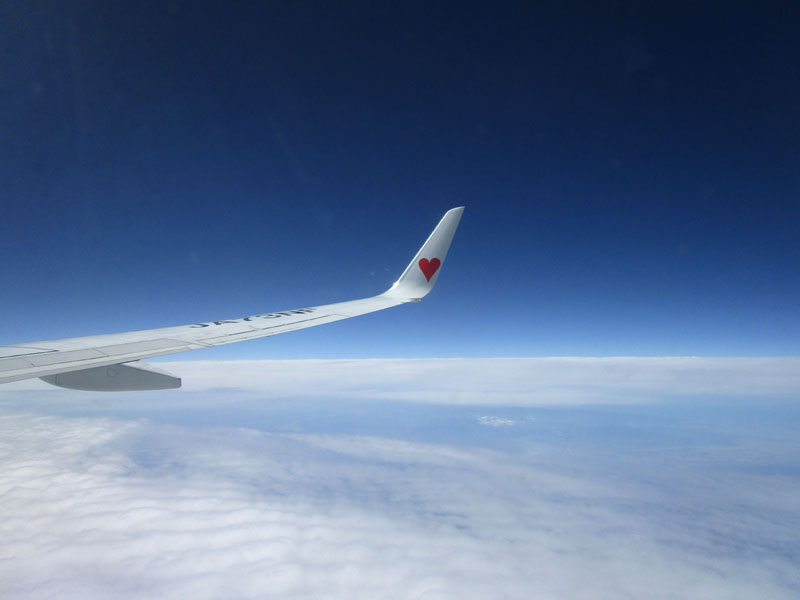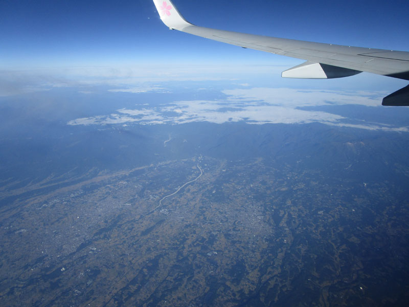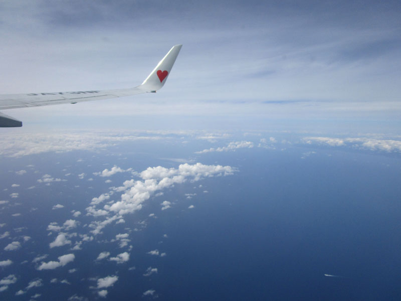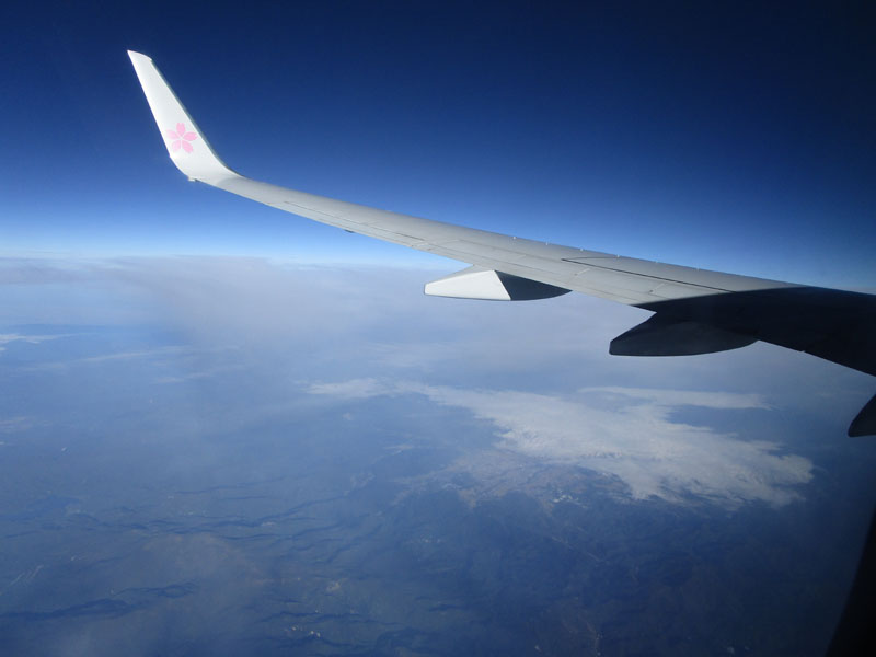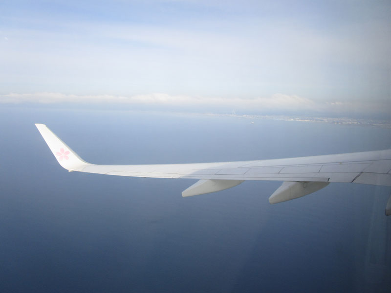 3人掛けのシートを1人で使えた。搭乗率4割程度か。