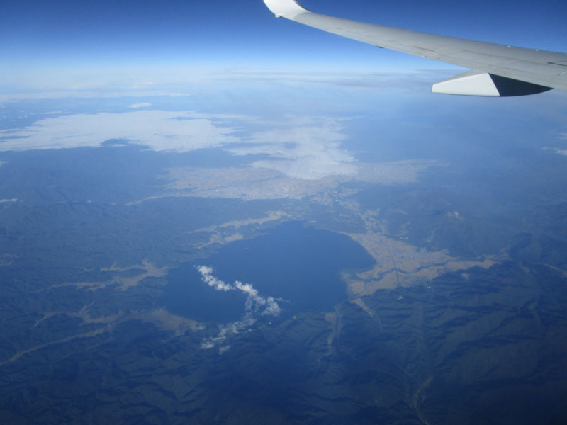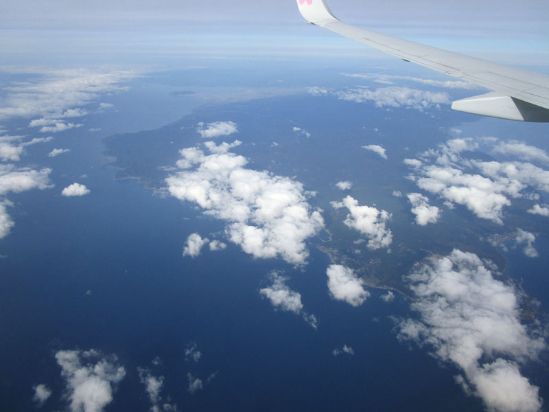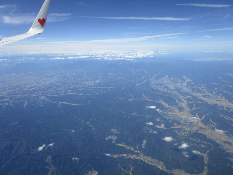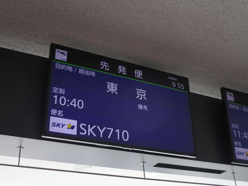 帰りは3人掛けの席に2人利用だった。搭乗率は6割程度か。