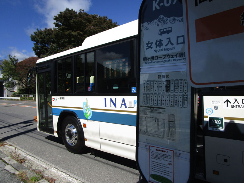 女体入り口バス停で25分待ち、ロープウェイ駅行きバスに乗る。