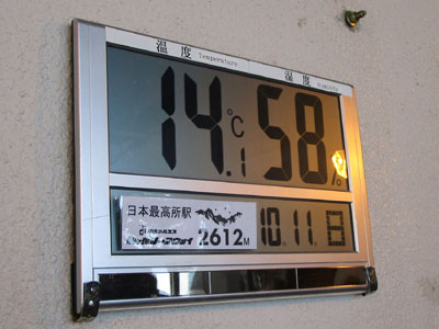 実際、頂上付近には霜柱があったので0℃程度だろう。