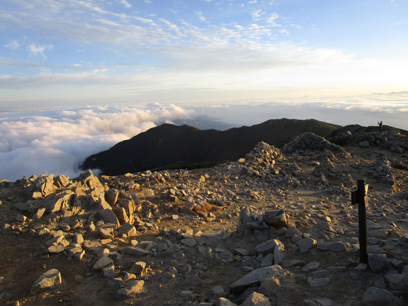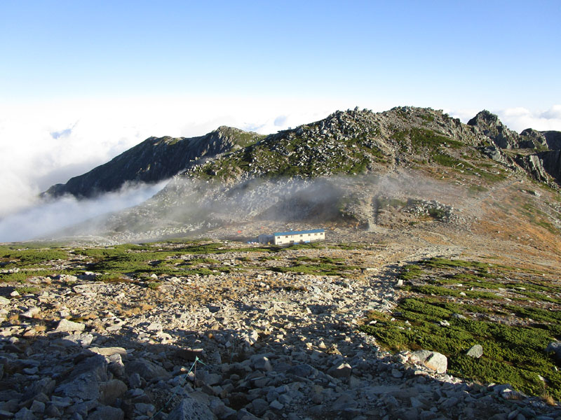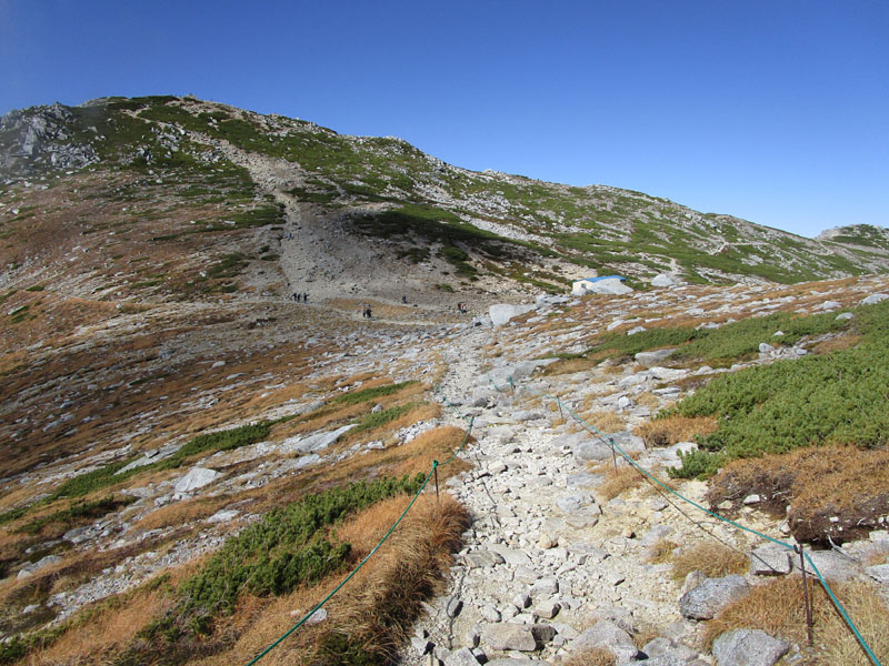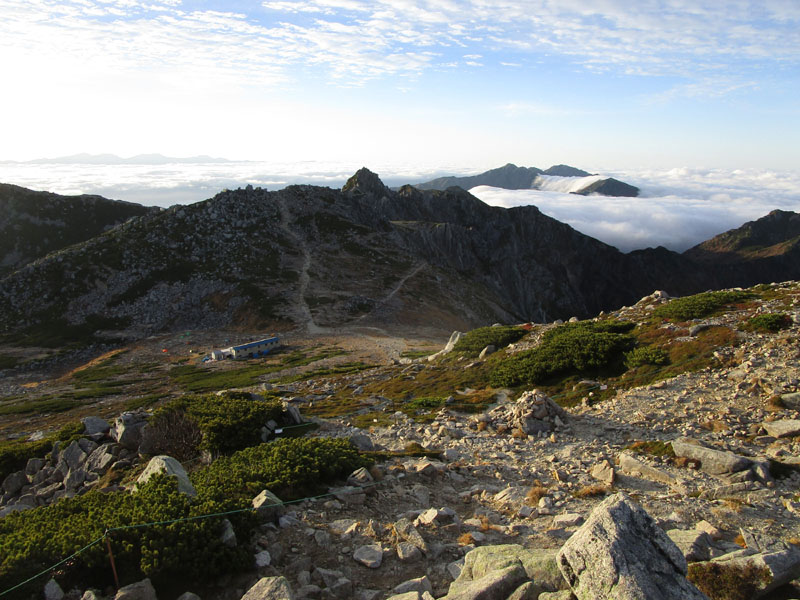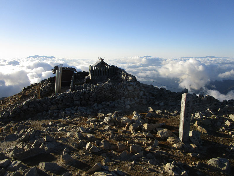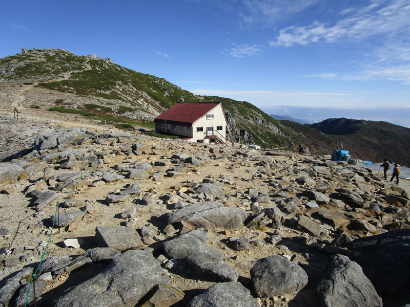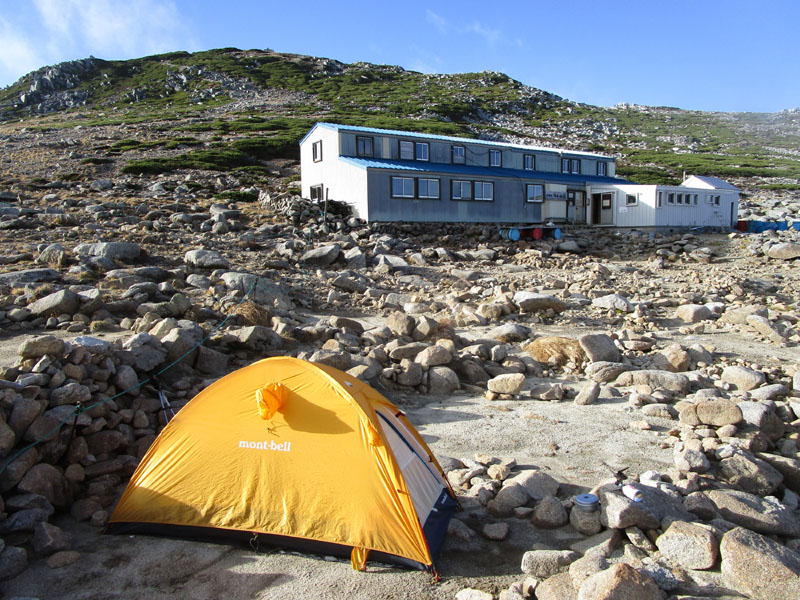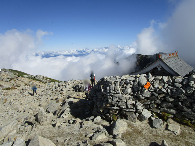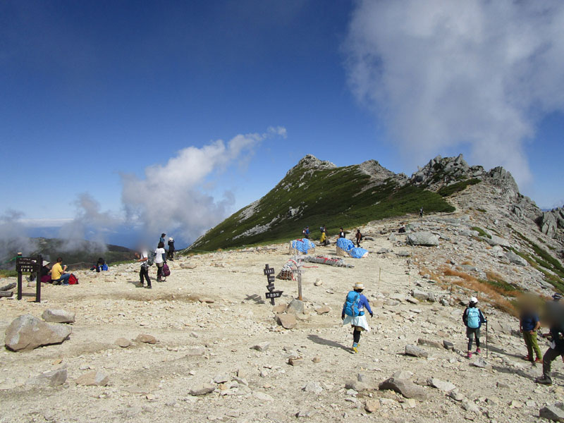 帰りは頂上木曽小屋を周回してテント場に戻る。