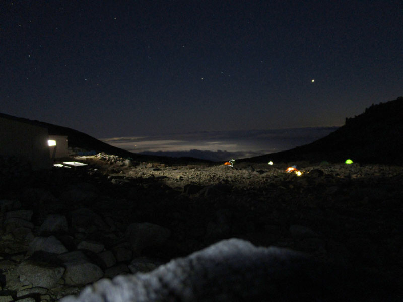 モンベル#2(快適2℃まで)+薄手ダウンジャケット+ホッカイロ4枚でぬくぬく熟睡。