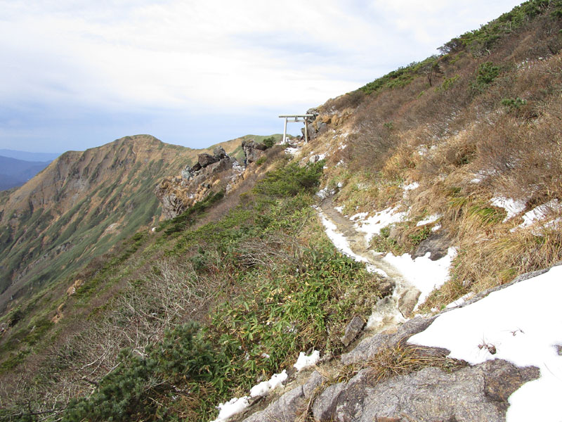北面に雪が残っていて通過に注意。アイゼンが必要。