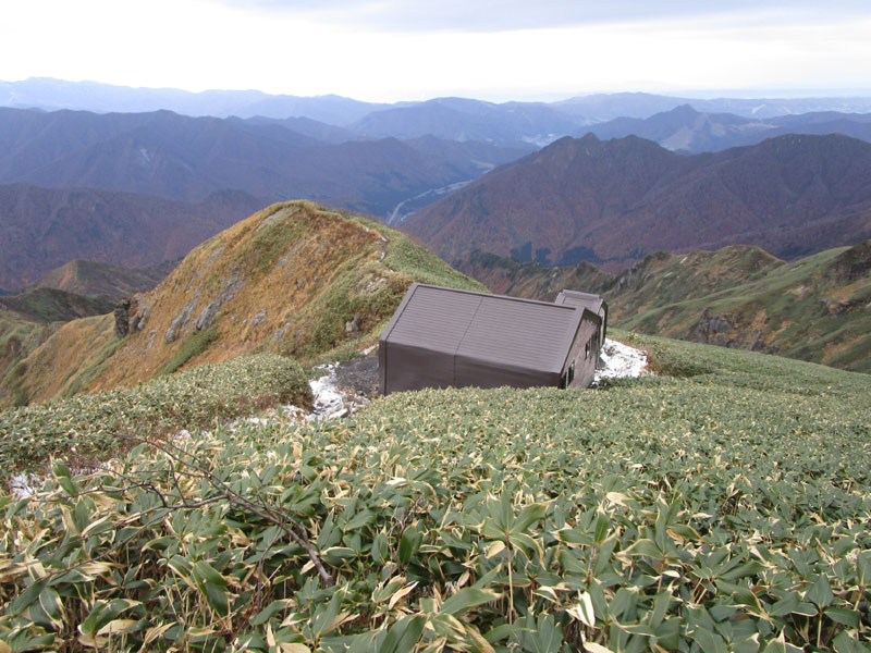 茂倉岳避難小屋についた。小屋は快適。