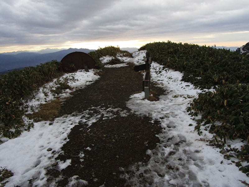 上部では積雪10cm、軽アイゼンが必要だ。