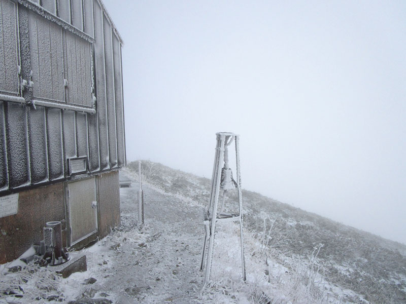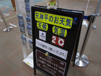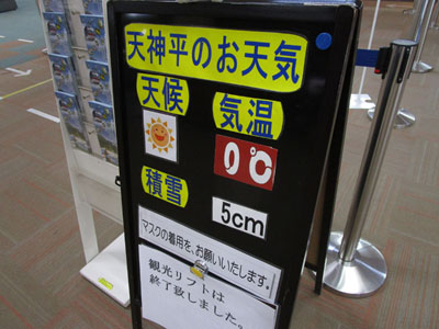 天神平では0℃と暖かい。積雪5cm。