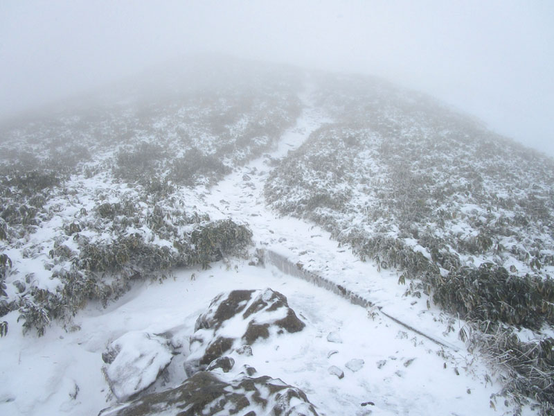 上部では積雪5〜30cm、軽アイゼンが必要だ。