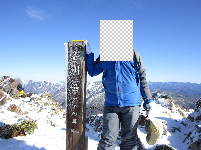 ちょうど西黒尾根から上がってきた人がいたので、撮影をお願いする。
