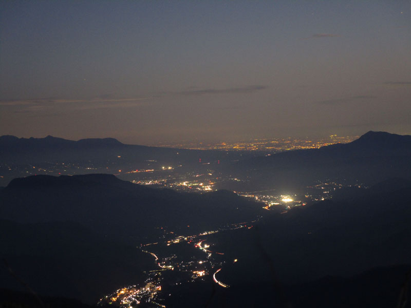 夜になると雲が取れて夜景が見えるようになった。