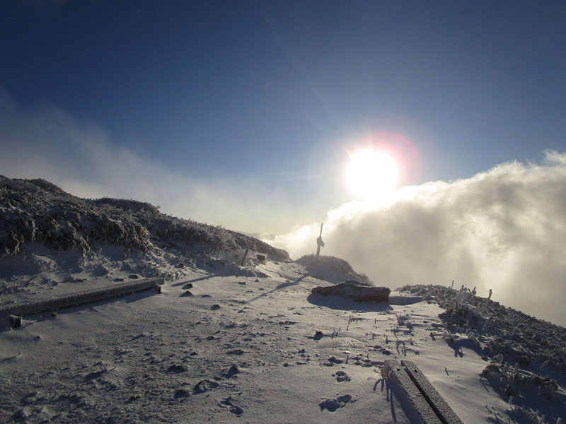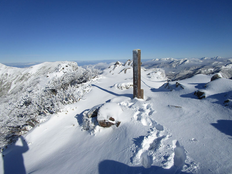 新雪を踏みしめて頂上へ。