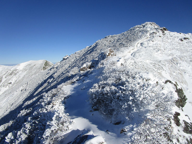風速24m/sの予報だったが、雪が少ない時期は登山道がくぼんでいて風が避けられるからか、