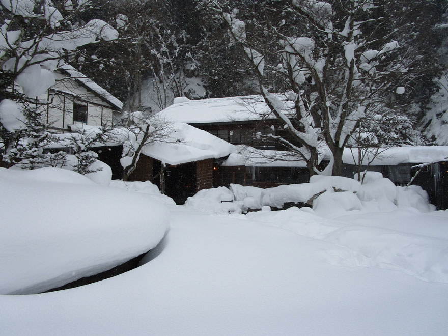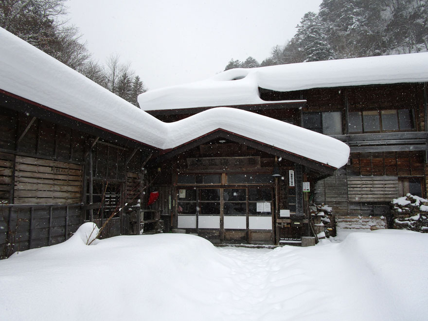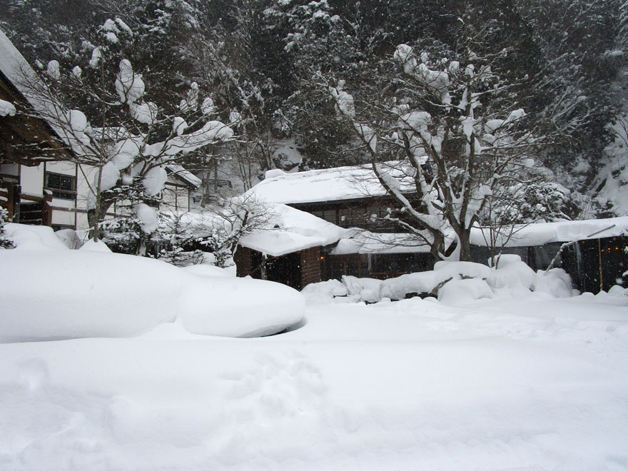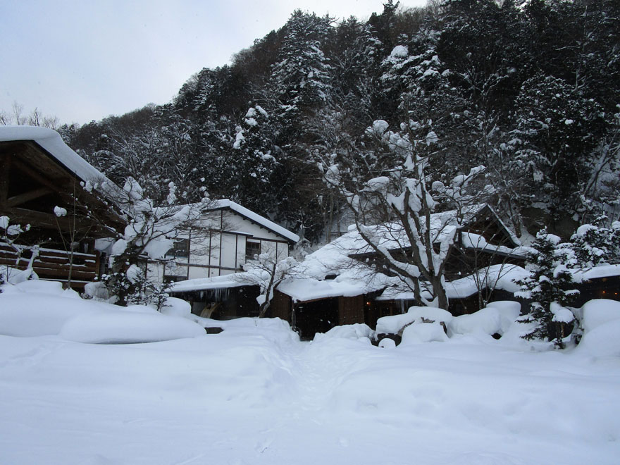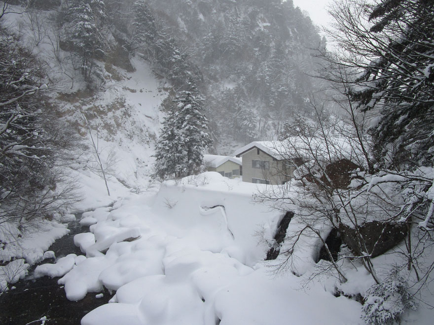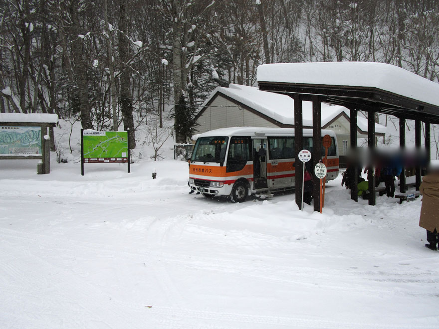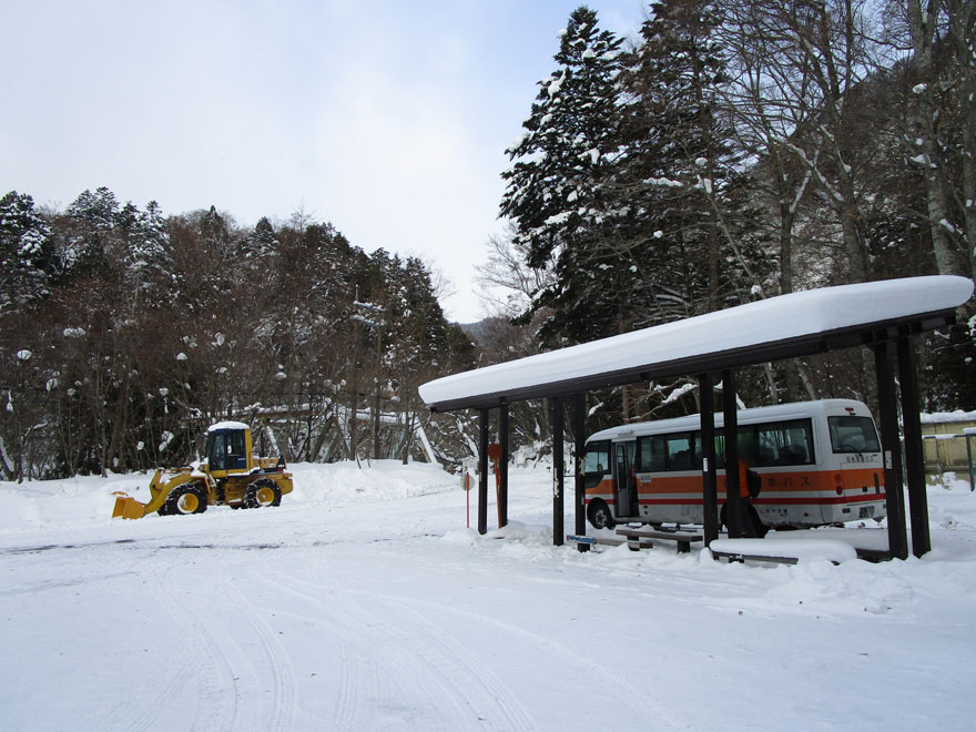 バスで山奥に行くにしたがってどんどん雪が多くなる。