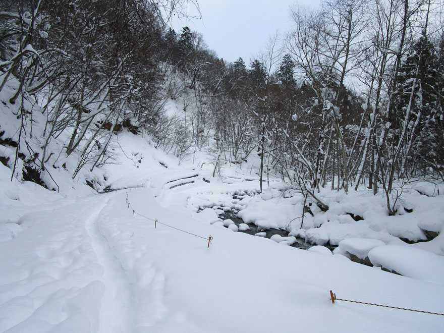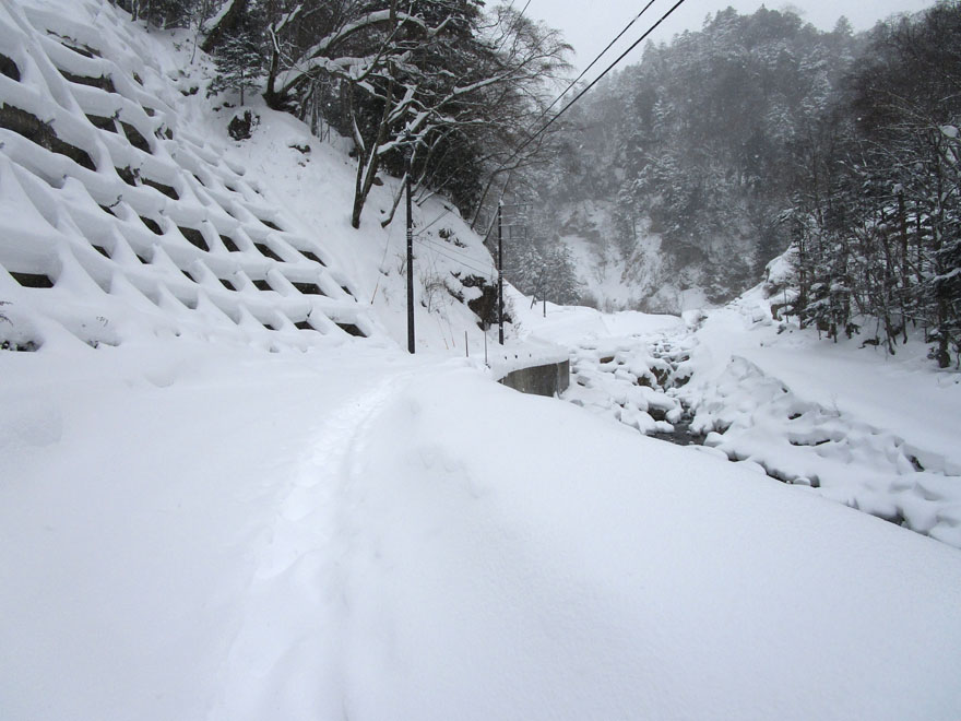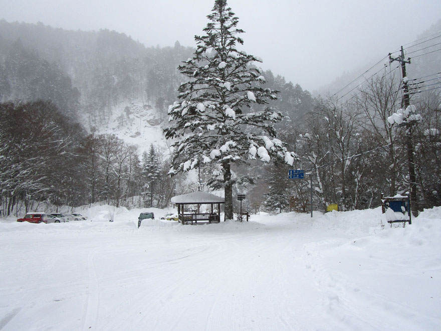 日光澤温泉までの車道は除雪されていない。車両の通行はないようだ。