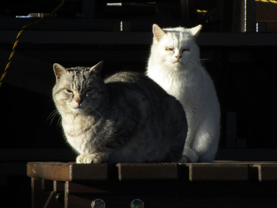 飯を食べていると道の駅の猫に監視される。写真には写っていないが計3匹いた。