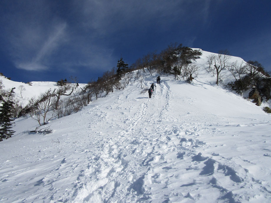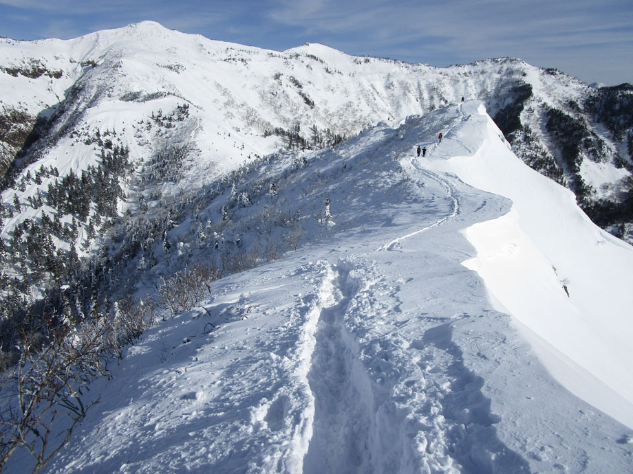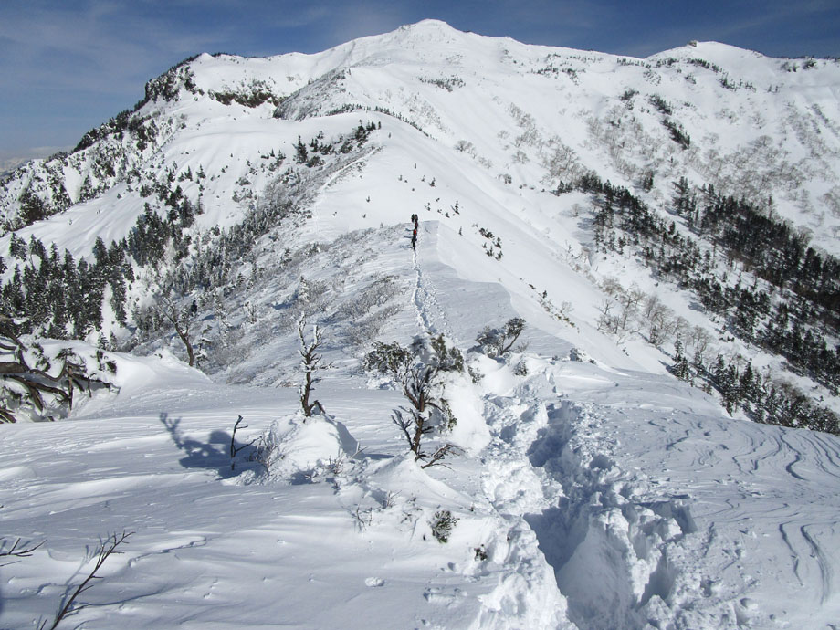 中ノ岳方面はトレースなし。誰も行っていない。