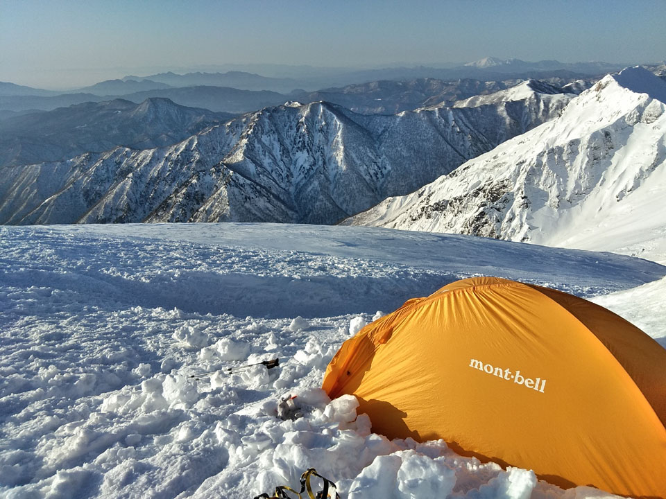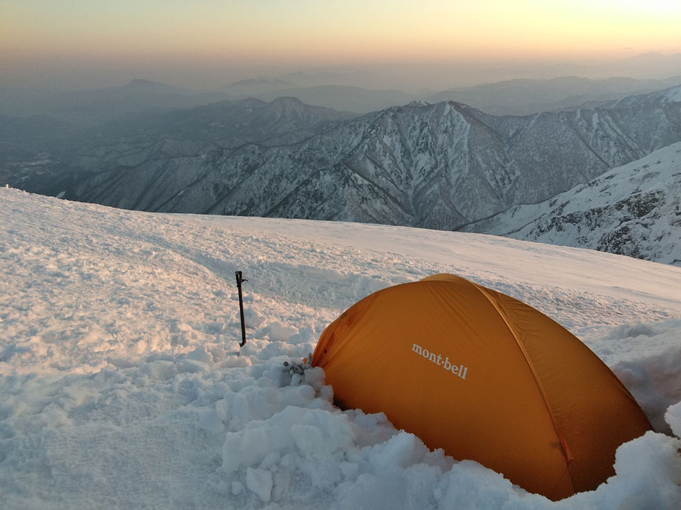 モンベル0#(-6℃まで)+メスナー(15℃まで)+薄手ダウン上下+ホッカイロ6枚で、ぬくぬく熟睡。