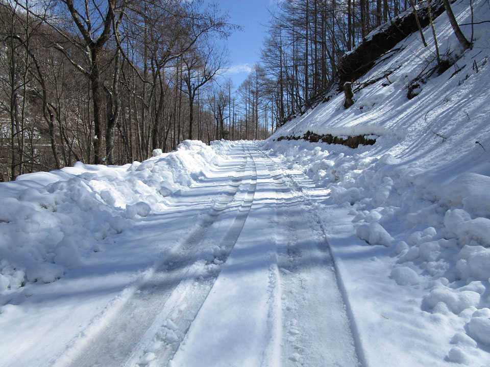 標高1450mの「小海リエックス」までの道路に雪はない。