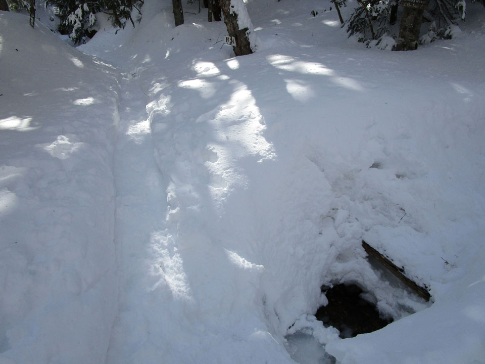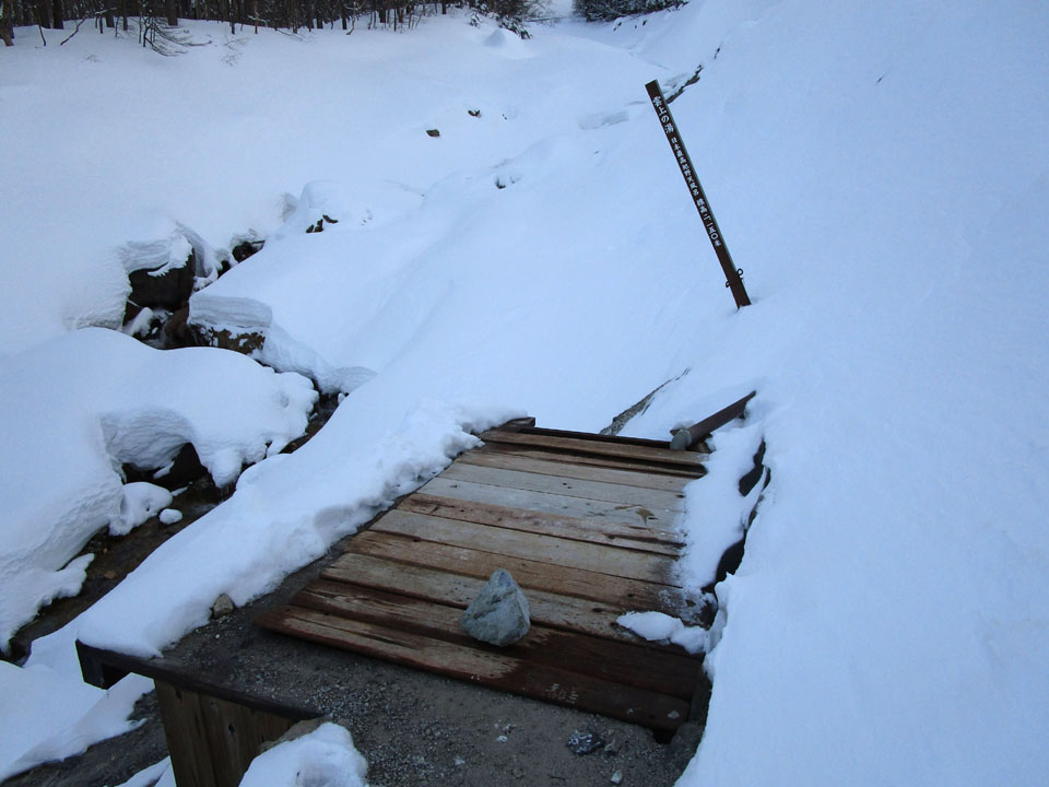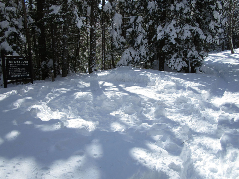 まもなく本沢温泉。本沢入り口方面はトレース無し。翌日はトレースがついていた。