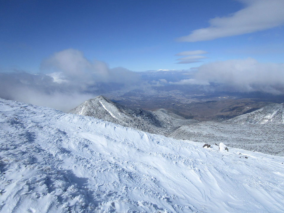 赤岳方面が見える。今の時期は難しくてとても行けない。