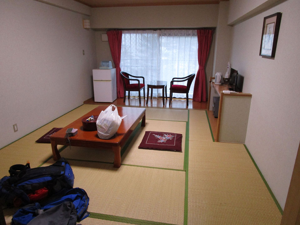 1人で8畳の部屋だ。いい感じに快適だな。コンビニで夕食・朝食を買う。